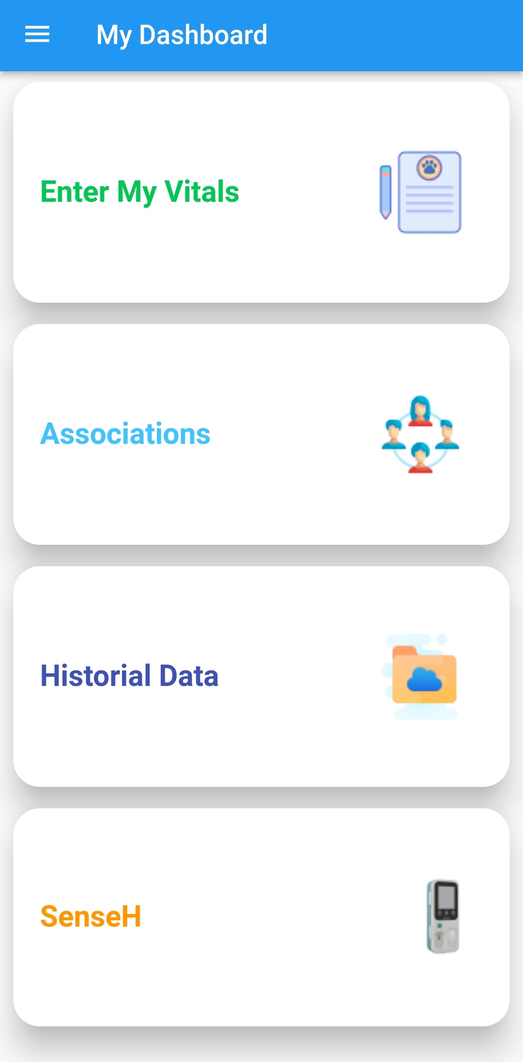 - Measured health parameters such as blood glucose, blood pressure, temperature, pulse, and SpO2 from a SenseH device using Bluetooth connectivity.